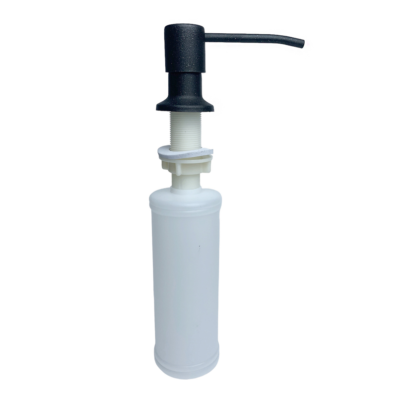 - Дозатор для моющего средства с металлической верхней частью и пластиковой основой, монтаж на мойку или рабочую поверхность