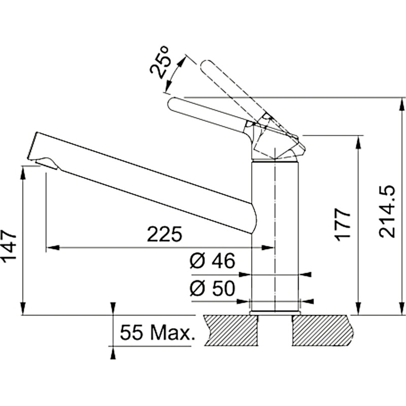 - Длина излива: 225 мм