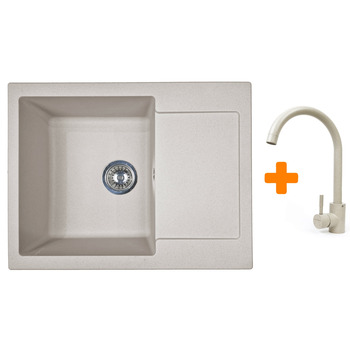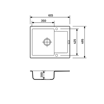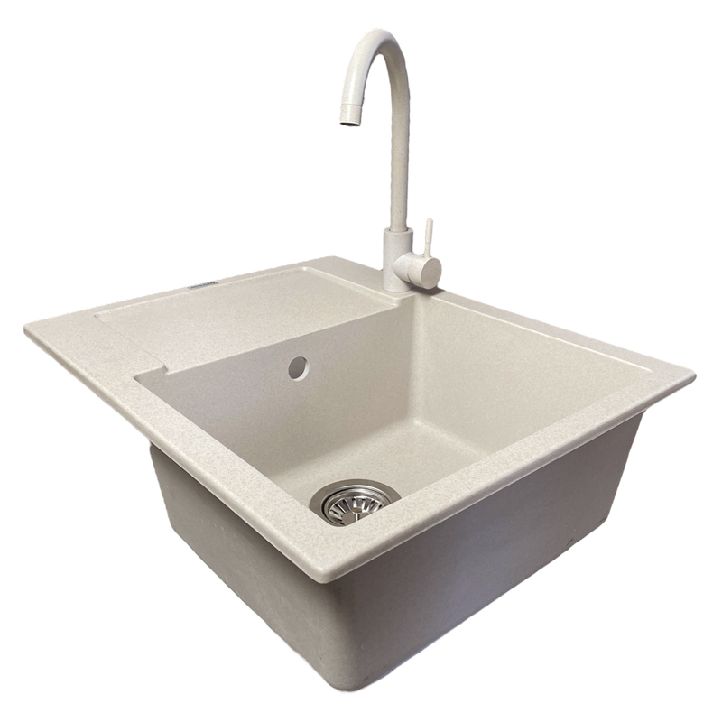 - Врезная мойка прямоугольной формы из искусственного камня (Solid Surface). Глубокая чаша (350 x 425 x 200 мм) и рабочая поверхность с практичным крылом для сушки.