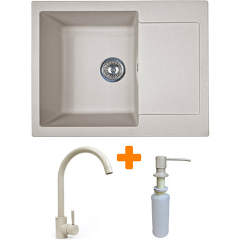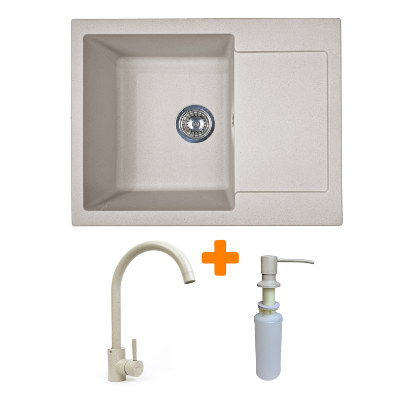 Надоело собирать кухонное оборудование по частям? Кухонный набор Adamant Minimal решит вашу проблему раз и навсегда! Здесь в комплекте: врезная мойка из прочного искусственного камня с удобным крылом, смеситель и дозатор. Всё подобрано с умом — вы почувствуете это с первого взгляда и касания!
