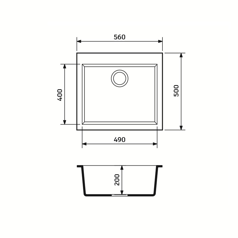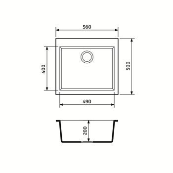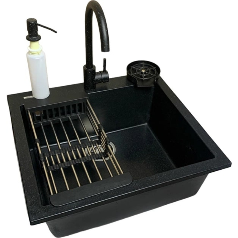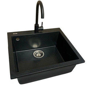- Квадратная врезная мойка из искусственного камня (размер 560x500x200 мм, чаша 490x400x200 мм) – вместительная и не занимает лишнего места;