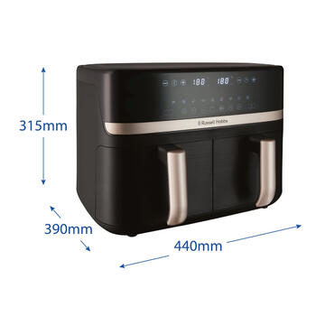 С Russell Hobbs SatisFry DualBasket вы экономите время, заботитесь о близких и не застаётесь над плитой. Приготовьте всё, что захотите, на несколько гостей, а потом просто загрузите съёмные детали в посудомойку – никакой рутины, только удовольствие от готовки.