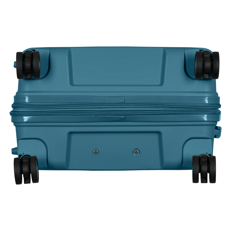 - Четыре двойных колеса вращаются на 360°, так что чемодан плавно катится по любому покрытию. Вас удивит, насколько это удобно!