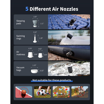 - Комплектация: насос, 5 насадок, USB-C кабель, мешочек, 2 вакуумных пакета 50х70 см