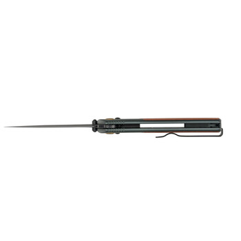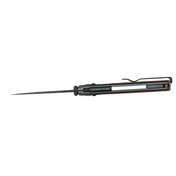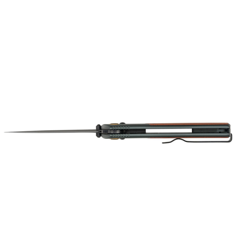 Главная изюминка модели — высококачественная Sandvik 14C28N. Благодаря твердости 57-59 HRC она отлично держит заточку, почти не боится коррозии, легко точится простыми абразивами, а чёрное покрытие убирает блики и скрывает следы эксплуатации. Профиль клинка — обратное танто: сильный, острый и универсальный, как ни крути.