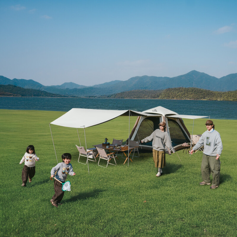 - Вместительная зона и дополнительный навес для расширения вашего кемпинга.