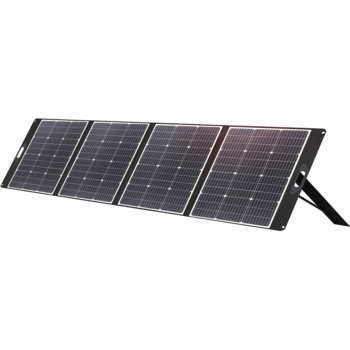 Складная панель из четырёх секций весит всего 7,1 кг. В сложенном виде её размеры 718 × 630 × 45 мм, в разложенном — 2355 × 718 × 25 мм. Регулируемые опоры обеспечивают оптимальный угол для сбора солнечной энергии.