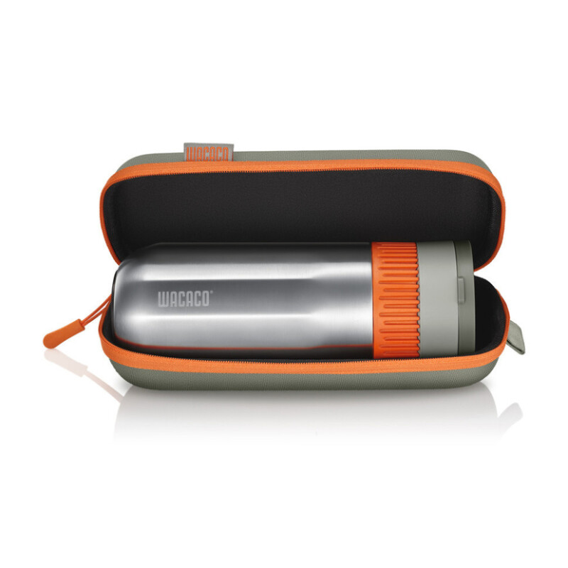 Кофеварка Wacaco Pipamoka использует механическую вакуумную экстракцию для равномерного заваривания. Вы не просто завариваете кофе, а сразу пьёте его из того же термоса! Устройство сохраняет температуру напитка до 8 часов, что особенно приятно в долгих поездках. Всё, что нужно — молотый кофе и горячая вода (об этом позаботится термос).