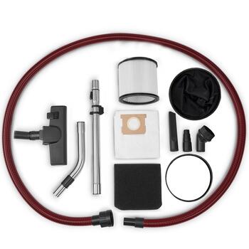 В комплекте вы найдете не только сам пылесос, но и HEPA-фильтр, поролоновый фильтр, комплект насадок, прочный мешок для мусора, телескопическую трубу из нержавеющей стали. Кабель и аксессуары можно удобно разместить на корпусе – пылесос всегда готов к работе!