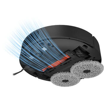 - Система двойной уборки: робо-пылесос отлично справляется как с сухой, так и с влажной чисткой. Мягкие мопы равномерно протирают пол, не оставляя разводов.
