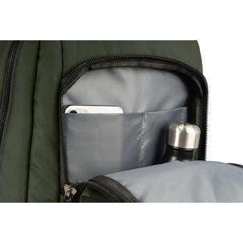 - Фронтальный органайзер: уместит блокнот, папку А4, бутылку или термокружку, а также пару мелких вещей для быстрой организации.