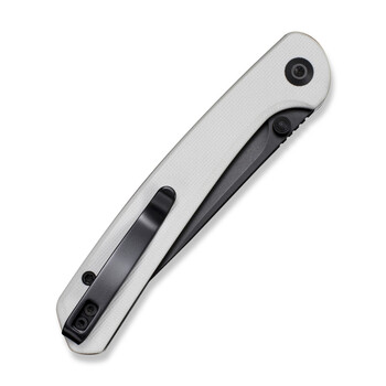 Чёрное лезвие и серая рукоять выглядят сдержанно и лаконично. Двухпозиционная клипса из нержавеющей стали позволяет выбрать удобное крепление — для правой или левой руки. Скошенные края рукояти минимизируют усталость даже при длительном использовании.