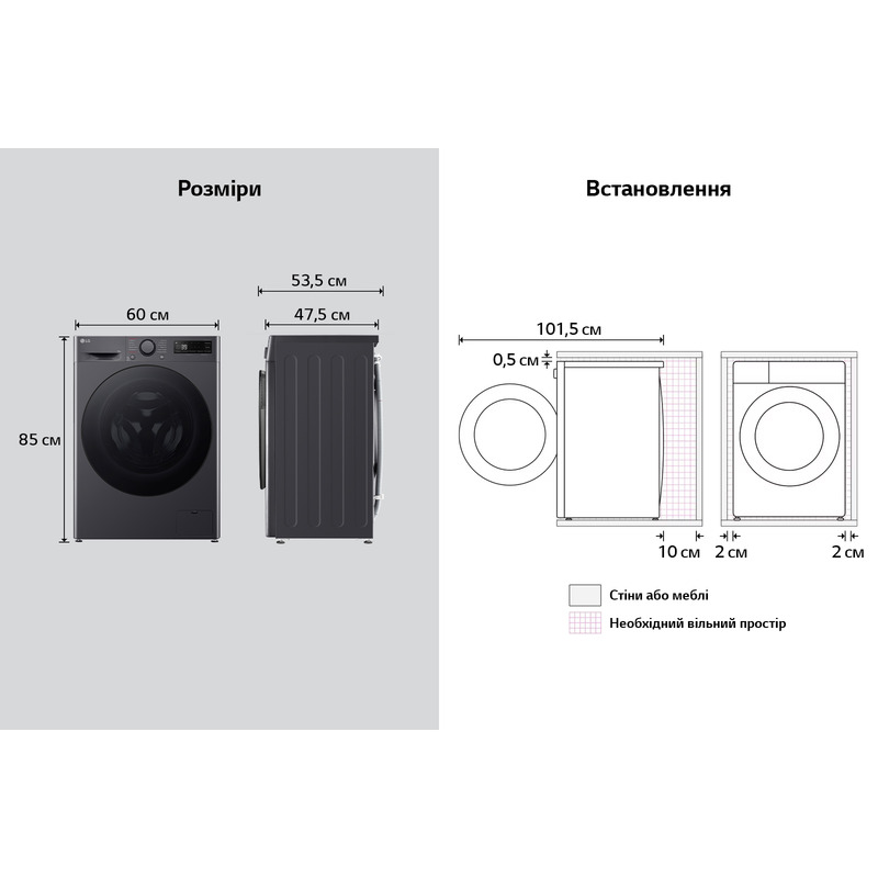 - Пар и TurboWash 360˚: Паровые программы глубоко очищают, устраняя микробы и аллергены, а быстрый режим TurboWash 360˚ обновит вещи всего за 39 минут!