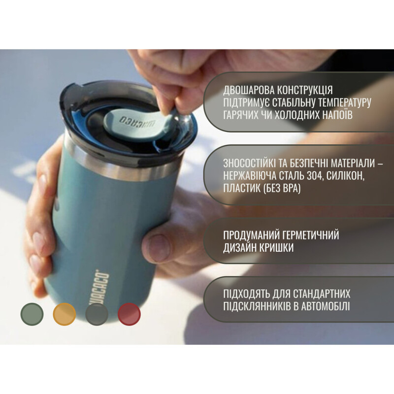 - Герметичная крышка: Удобно открывается одной рукой, надёжно защищает от проливания даже в движении.