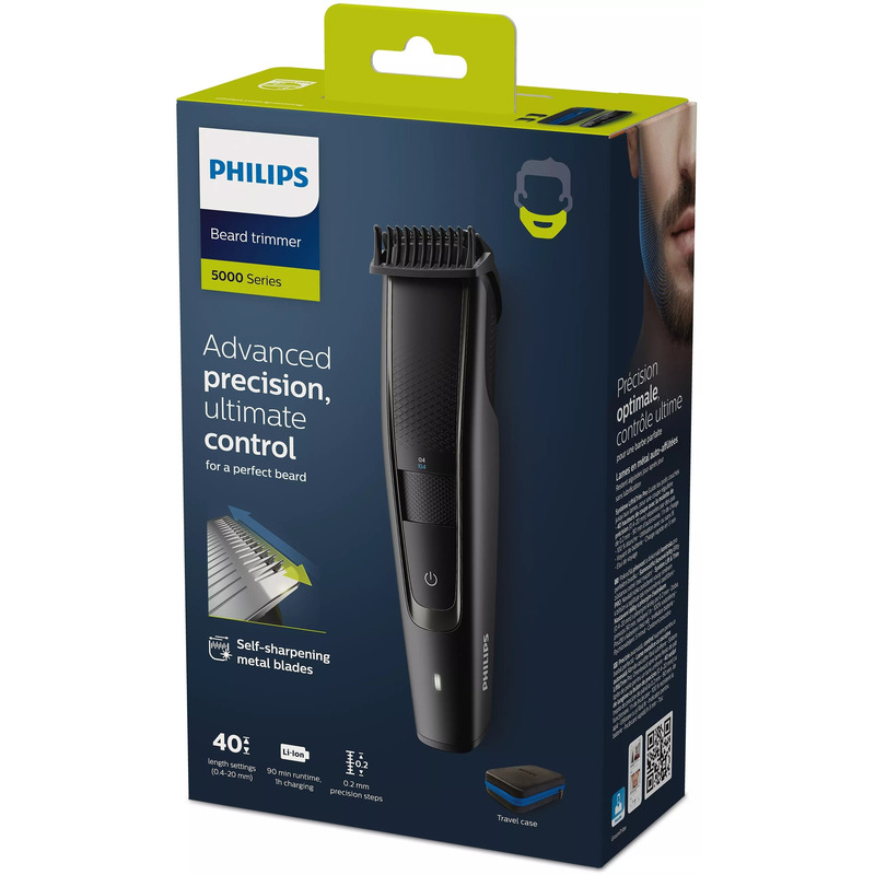 Philips BT5515/70 оснащён индикатором заряда и LED-подсветкой для удобства. Стильный чёрный корпус не только выглядит элегантно, но и легко хранится.