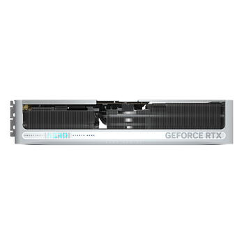 Видеокарта выделяется стильным белым корпусом с перламутровыми акцентами. Дизайн вдохновлён элементами воды: матовое и глянцевое покрытие, плавные линии корпуса, легкий бирюзовый перелив – всё выглядит по-настоящему премиально. Подсветка RGB Fusion дополняет индивидуальность вашей системы, а металлическая пластина сзади придаёт прочность и стабильность при установке даже в самых мощных сборках.