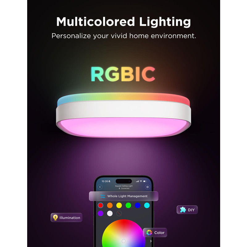 Уявіть, наскільки легко може змінюватися атмосфера вашої оселі одним дотиком. Стельовий світильник Govee H60A4 — це не просто освітлення, а можливість створювати настрій під будь-який момент, будь це робочий ранок чи тихий вечір відпочинку. Потужний світловий потік у 2400 люменів і плавне регулювання яскравості дозволяють вам підлаштовувати освітлення саме так, як хочеться.
