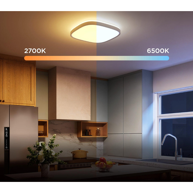 - Енергоефективність та довговічність: потужність 2400 лм, діапазон регулювання яскравості від 1% до 100%, колірна температура від теплого 2700K до холодного 6500K. Займає лише 31×31 см і ідеально підходить для кімнат площею 15–20 м².