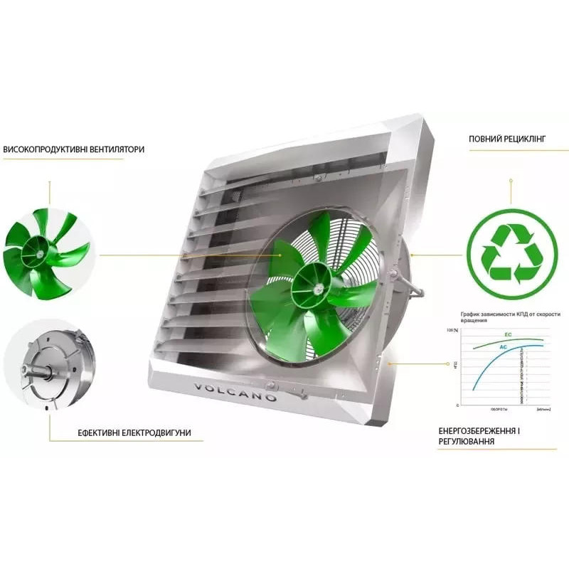 - Висока енергоефективність: сучасна технологія вентилятора дозволяє знизити витрати електроенергії без втрати потужності.
