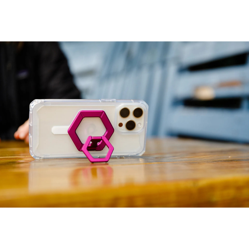 Завдяки UAG Magnetic Ring Stand ви отримуєте елегантний тримач-підставку, яка поєднує в собі бездоганний дизайн і практичність. У формі шестикутника це кільце легко кріпиться безшовно до чохла або пристрою з підтримкою MagSafe і витримує інтенсивне щоденне використання.