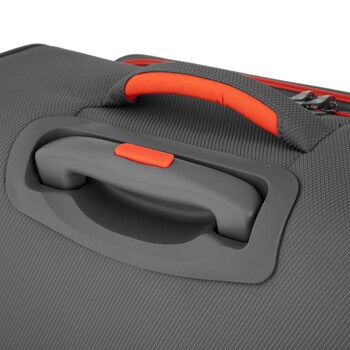А знаєте, що приємно? Цю валізу легко підтримувати в чистоті. Поліестр не боїться ні крапель дощу, ні піску. Вшиті ручки з боків дозволяють легко поставити валізу у потрібне положення, а сумки чи рюкзак можна зафіксувати зверху на ручці під час довгої прогулянки аеропортом.